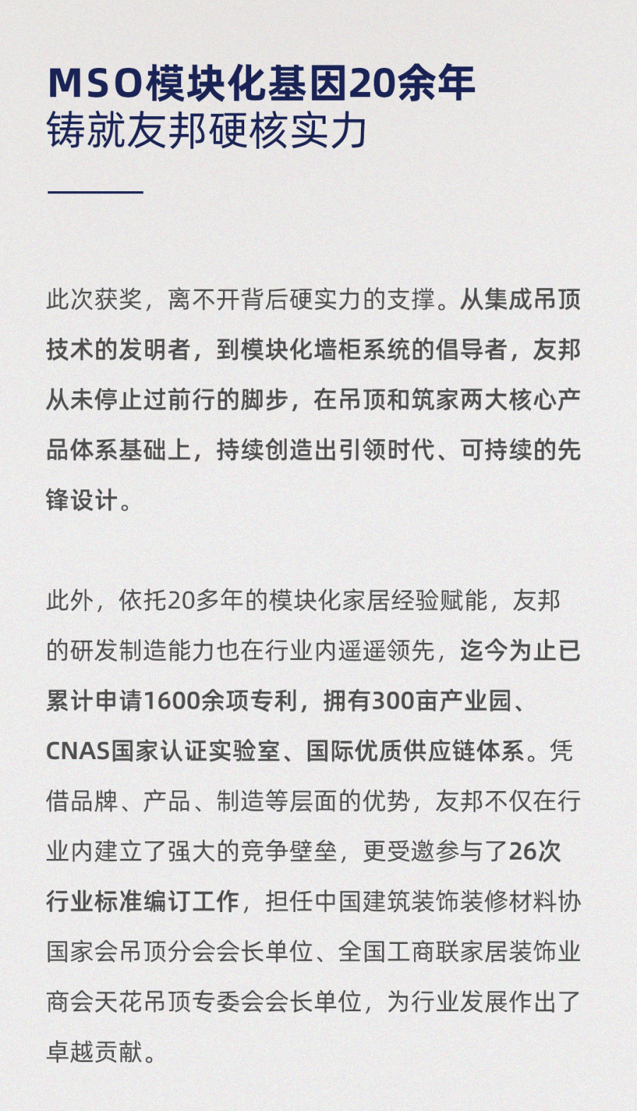 友邦連斬“集成吊頂十大品牌”、“智能集成家居質(zhì)量獎(jiǎng)”兩項(xiàng)大獎(jiǎng), 以卓越品質(zhì)引領(lǐng)行業(yè)高質(zhì)量進(jìn)階