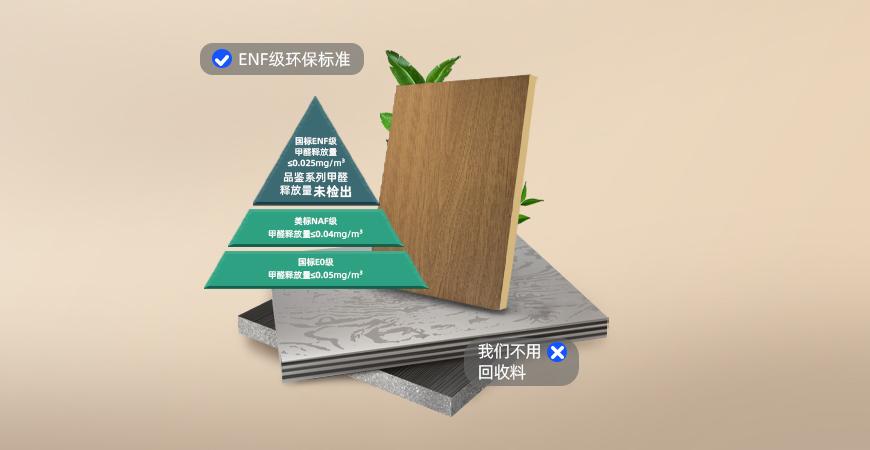 5K木品鑒系列符合ENF級*環(huán)保標準,基材均使用100%原生新料,