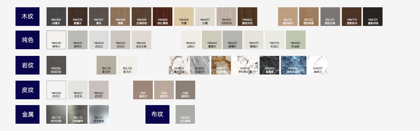 木紋、純色、巖紋、皮紋、布紋,